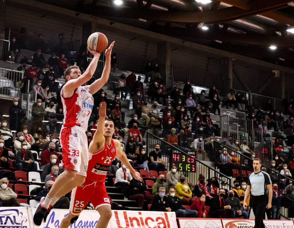 La prima tripla della partita, dopo cinque errori, è arrivata a 43 secondi dalla fine ed è quella che ha chiuso i conti. Il cuore del piovenese Alessandro Panni ha fatto ancora una volta la differenza, consegnando alla Top Secret Ferrara l’infuocato derby sul campo della Tramec Cento, col palasport tornato al cento per cento di capienza. Dalla città delle biciclette sono arrivati in duecento, con anche il patron Francesco D’Auria in mezzo alla frangia più calda del tifo biancazzurro.