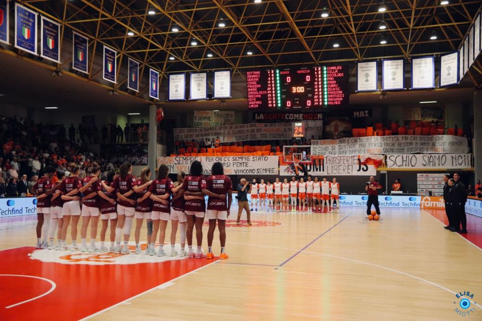 Un secondo tempo aperto da un altro colpo di teatro, un episodio mai visto prima da tanti dei presenti: Silvia Marziali, arbitra di lunga esperienza anche in Lba, oltre che medico, dopo aver annullato il canestro della Reyer segnato sulla sirena del secondo quarto visionando l’instant replay, uscita dagli spogliatoi ha comunicato di aver cambiato decisione. Decisioni arbitrali che però non hanno condizionato la gara: le ragazze di Mazzon hanno dimostrato di essere più squadra. A fine gara capitan Sottana era furiosa. Martedì 28 aprile alle ore 19.30 al PalaRomare è in programma la festa per il suo ritiro, con brindisi finale. Spumante che se non arrivasse lo Scudetto, rischierebbe di andare un po’ per traverso.